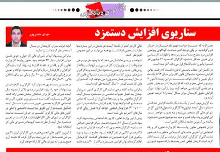 همانگونه که شما خواننده فهیم در جریان قرارگرفتهاید در یکی دو ماه اخیر مباحث گوناگونی پیرامون افزایش مزد مطرح شده است و زمزمهها و اظهارات کارشناسی برای تعیین حداقل دستمزد کارگران که حدود ??12 میلیون نفر دستمزد بگیر را تحتالشعاع قرار میدهد، آغاز شده است.