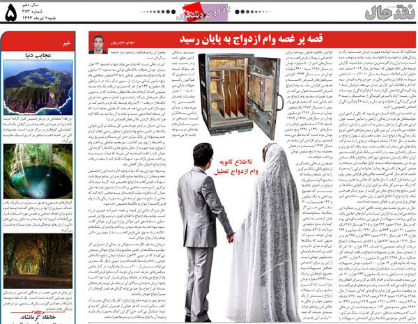 خبرآمد خبری در راه است، توقف وام ازدواج تا اطلاع ثانوی، درتشریح این خبر معاون ساماندهی امور جوانان وزارت ورزش و جوانان گفت: نبود بودجه، به صرفه نبودن پرداخت وام برای بانکها و تکالیف زیاد صنوق ملی قرضالحسنه از مهمترین دلایل توقف وام ازدواج جوانان است. درپایان به نظر نگارنده، مسئولان در حالی از دشواری کار دولت و بانکها در تامین منابع وام ازدواج جوانان سخن میگویند که در سویی 33 هزار میلیارد تومان منابع بانکهای دولتی را دانهدرشتها بلعیدهاند و در سویی دیگر یک مشتری میتواند بیش از 300 بار وام بگیرد. در کنار تمامی سرفصلهای تعریف شده برای هزینه کرد منابع قرضالحسنه، وام ازدواج میتواند در جایگاه ویژهای قرار گیرد چرا که با وجود ارزش نهچندان بالای آن در مقابل تورم و هزینههای سرسام آور ازدواج باز هم میتواند گرهای هر قدر کوچک را از مسیرازدواج جوانان بگشاید. به هر صورت تهیه مخارج ازدواج و آغاز یک زندگی مشترک آنقدر سنگین است که هر جوانی از هرمیزان کمکی که به او شود، استقبال میکند. حتی اگر این کمک بهصورت وام باشد و تهیه آن با انواع مشکلات و دردسرها همراه باشد.