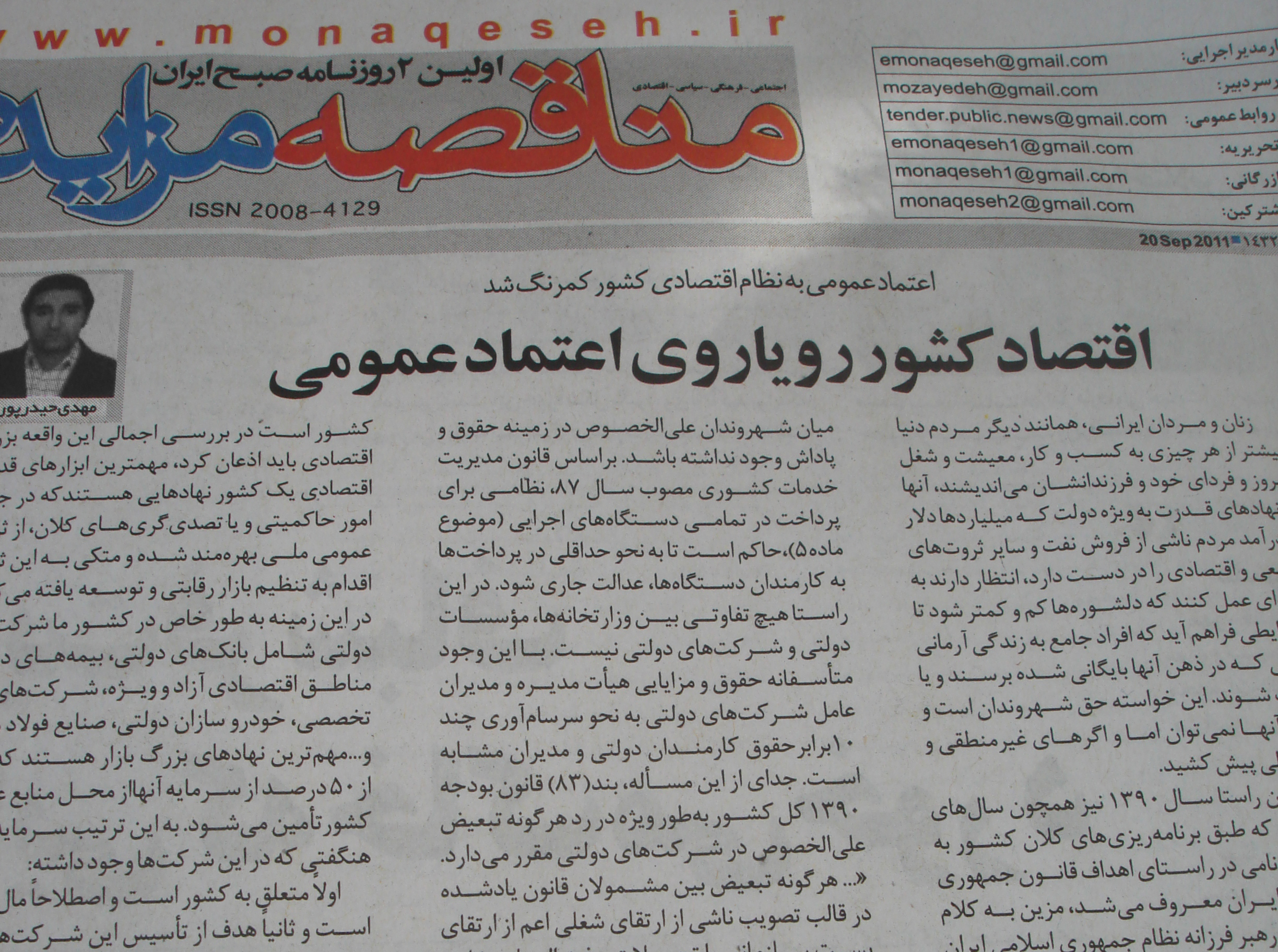 روزنامه های آرمان - تفاهم - سیاست روز-مناقصه مزایده- نقد حال